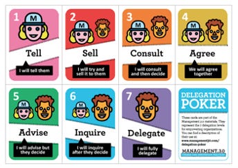 While writing this article, I recalled Jurgen Appelo’s Delegation Poker tool from his Management 3.0 book. I’m now inspired to suggest another card, call it 7a or 8.